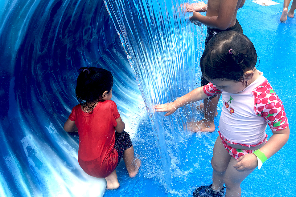 All throughout the park are water sprayers that you can maneuver to squirt a friend; small dump buckets; ocean- and pirate-themed springs to play on and touch; palm trees and mushrooms with light rain; and more. No matter the age, kids (and their caregivers) are in for some wild, wet fun!