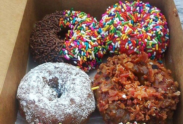 Sprinkles, powdered sugar, and even bacon crumbles are just some of the toppings available at Shore Good Donuts.