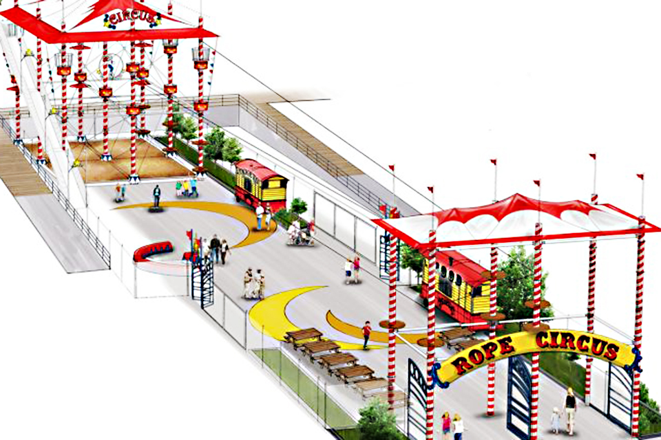 The new adventure area at Luna Park with zip lines and a rope course will debut 2019! Rendering courtesy of Luna Park