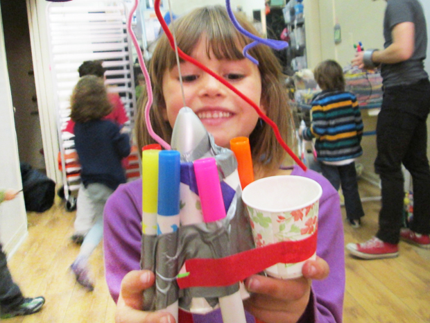 Top image: A young kid shows off her cool robot creation. Photo courtesy of Brooklyn Robot Foundry.