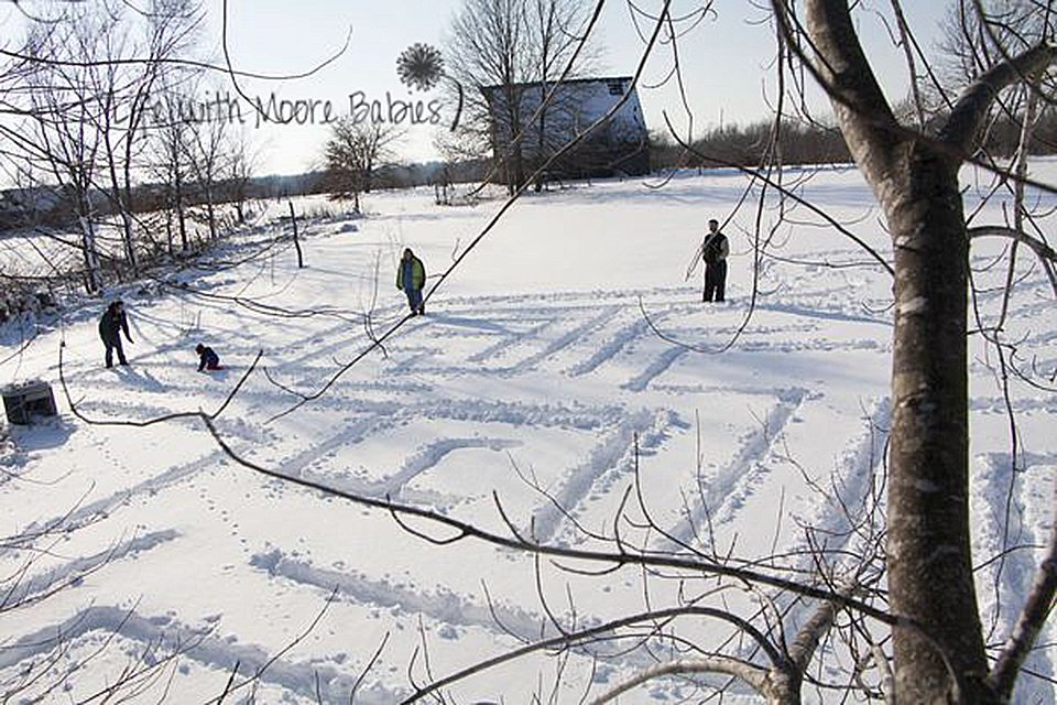 Get your kids to shovel snow for fun by building a snow maze. Photo by Life With Babies