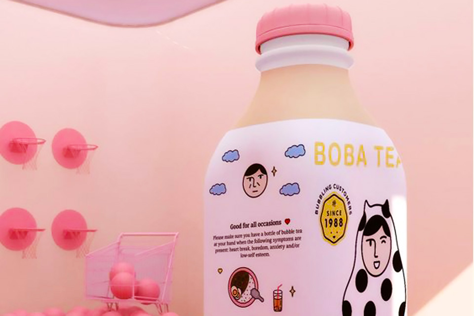 Room for Tea's five "experiences" include a "Labyrinth of Tea Origin” where visitors make their way through a layered maze of curtains in a quest to find the world's oldest tea, “Milk Tea Metropolis,” where you can walk down a virtual street in Hong Kong to explore another chapter of tea history, “Matcha Under Cherry Blossom,” where you can learn more about traditional tea ceremonies in a modern teahouse, and "Summer BOBA Court,” a fun interactive space filled with giant pink bobas and milk bottles.