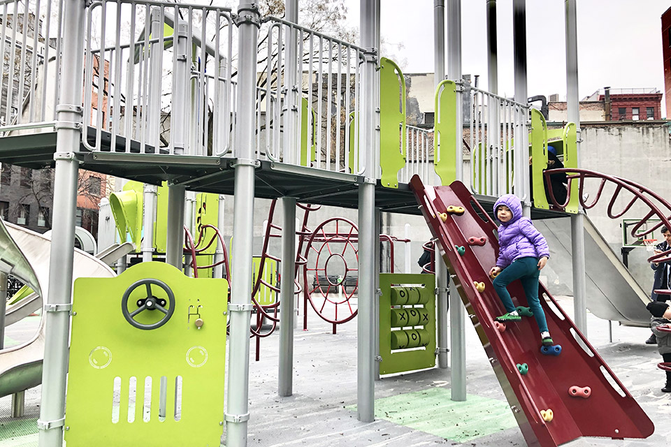 Nested within Soho, Nolita is a neighborhood best known for its chic cafes and fashion forward boutiques. But it's also a family destination thanks in part to one of the city’s most new and improved playgrounds. After a two-year long, $1.7 million renovation funded by the borough president and city council, the DiSalvio Playground recently re-opened to the delight of both neighborhood kids and kids who have traveled from other parts of the city. Read on for an overview of our recent visit.