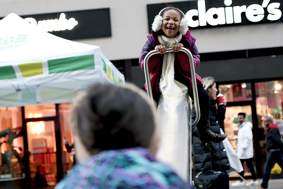 Eight seesaws of various sizes are part of the activation, which continues to sway through March 29.