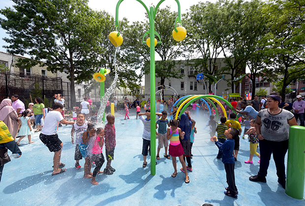 Van Alst Playground's reconstruction was the first project to see completion under the Community Parks Initiative, which is funding renovations in some of the highest-need neighborhoods. Community input has been crucial to the design of Van Alst and other CPI projects. Van Alst's cracked asphalt lot has been transformed into a multi-sport surface, and colorful new playground equipment and spray showers are welcome additions. Construction also added an adult fitness area and improved accessibility for all visitors.