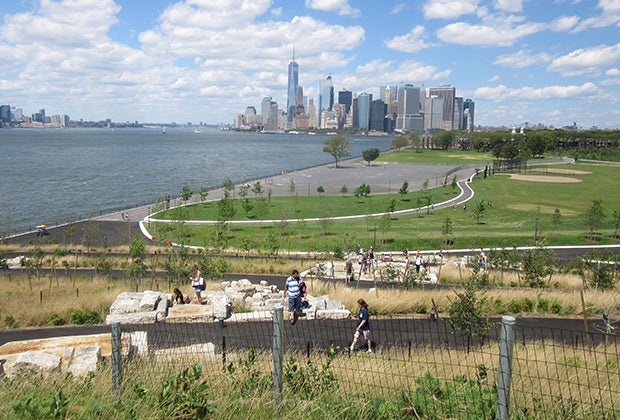 When you've had enough of the slides, be sure to check out the other hills, which are a bit of an engineering marvel. Built with enough debris to fill 1,806 subway cars—enough to build a train 29 miles long—The Hills were constructed using a combination of salvaged debris from non-historic structures demolished on the island, clean fill, and lightweight pumice stone, without which The Hills would be too heavy and push the old island fill into the harbor.