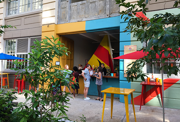 Once we felt we’ve conquered the course, we swapped our mini golf items for ping pong paddles and balls ($5 per person), and strolled to the other side of the same courtyard, which featured a huge room of ping pong tables. And wouldn’t you know, the there is yet another pop-up bar right outside the ping pong room should you need a refill. If you ordered food, it will get conveniently delivered to you wherever you’re wandering, and you can enjoy it at the nice outdoor seating area right outside the ping pong room.