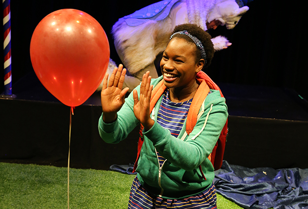 Kids are transported immediately upon entering the theater for a showing of Please Bring Balloons, a toddler-friendly production by New York City Children’s Theater.