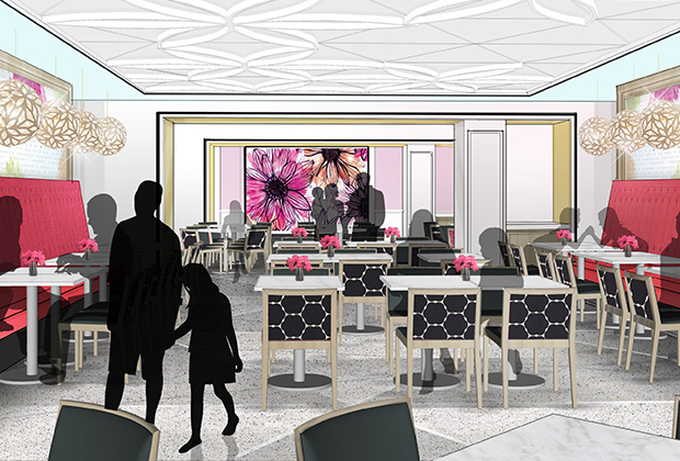 A rendering of the new family cafe, which will include birthday party rooms.