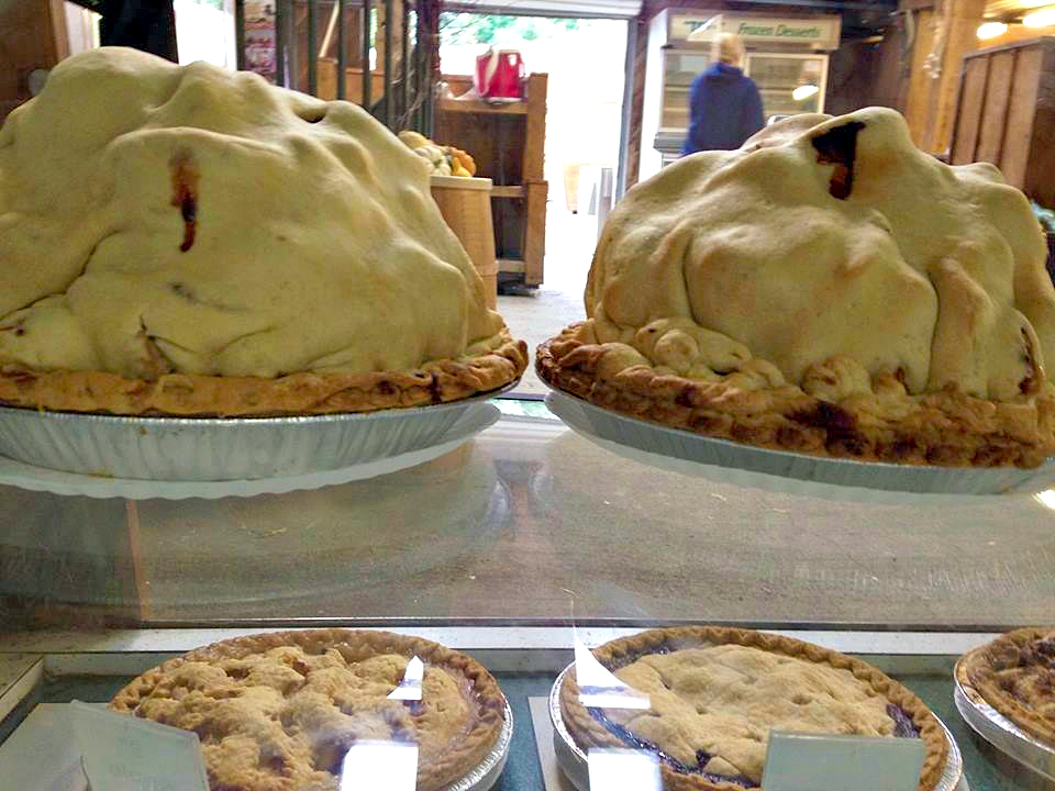 Each mile-high apple pie is made with 5+ pounds of apples at Mackey's Orchard.