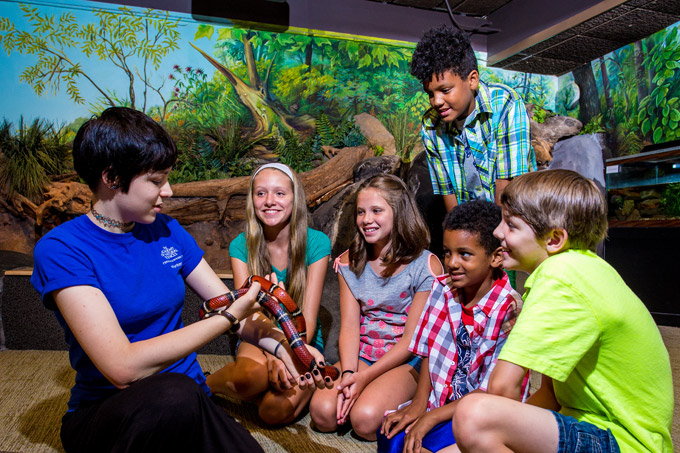 Learn about some of the museum’s residents, including turtles and living dinosaurs (aka birds) during the stage shows that occur at various times throughout the day. See the animals, ask questions and get expert answers in the stadium seating of the auditorium located near Dinosaur Hall.