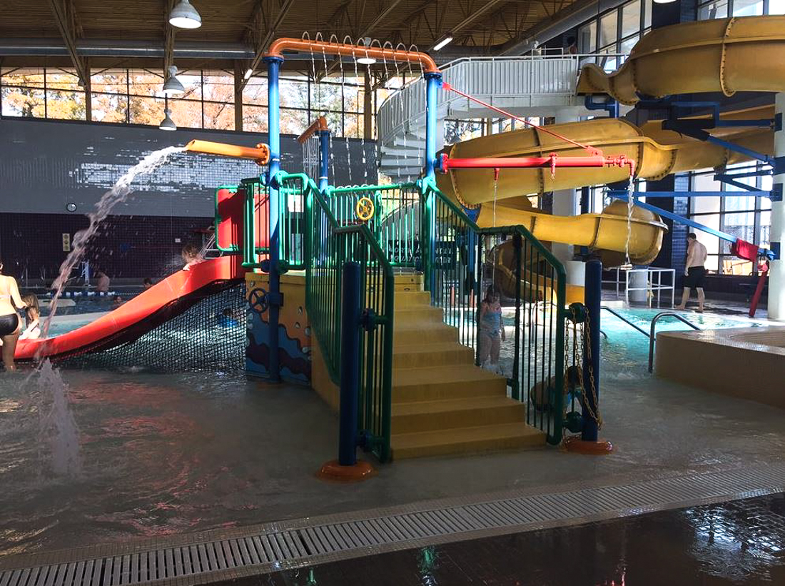 This large wellness center is open to the public and includes a fun indoor leisure pool that appeals to kids of all ages. The indoor pool features a water slide, a lazy river, an in-pool playground, and other entertaining water-play features.