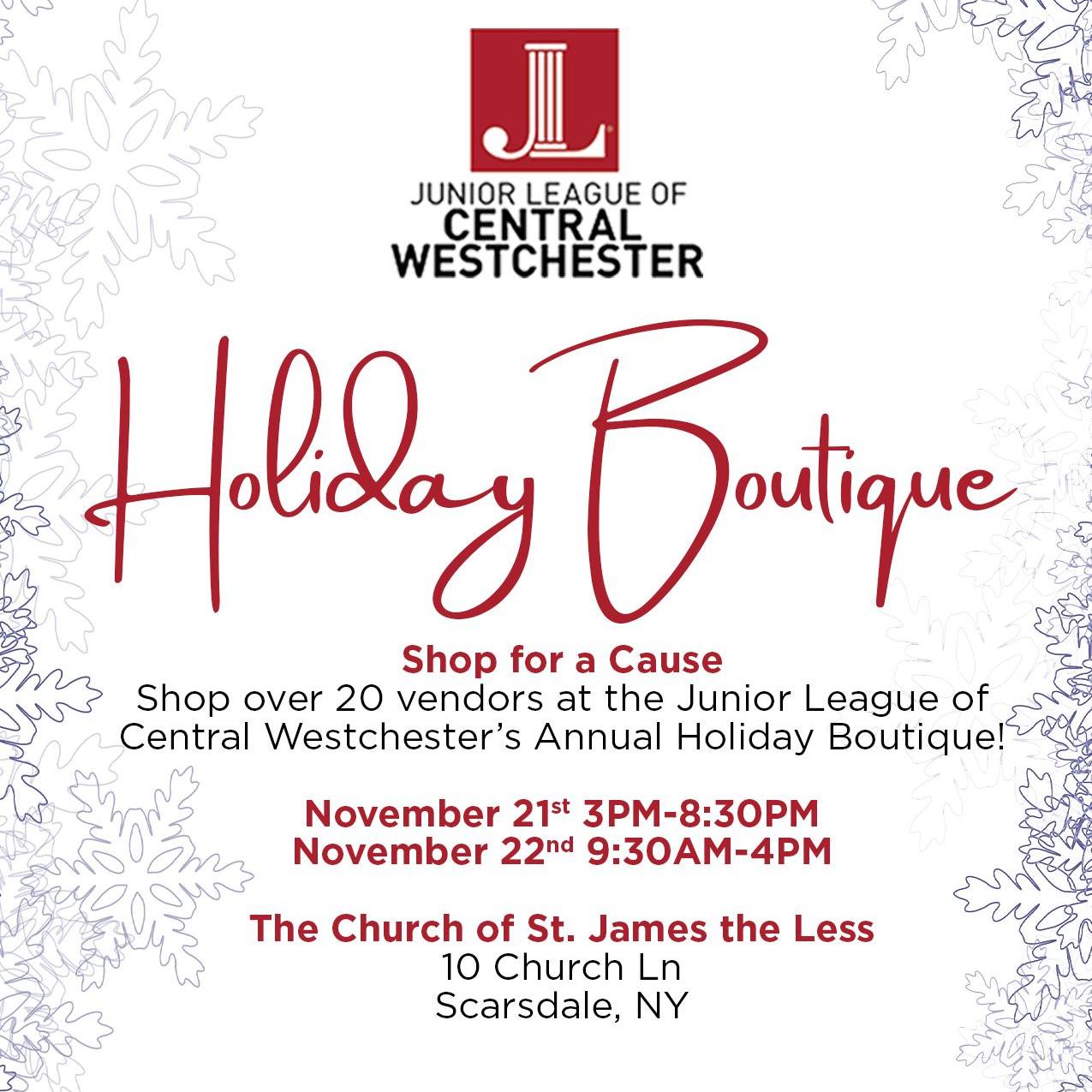Explore the selection of handcrafted gifts, jewelry, clothing, accessories, and so much more in a variety of styles and price ranges to fit everyone's taste at the Junior League of Central Westchester’s annual Holiday Boutique at St. James the Less.