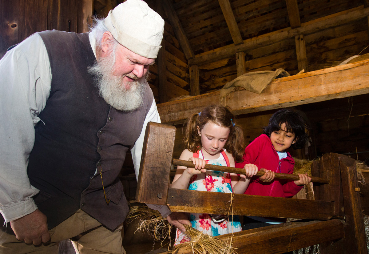 Though the exact layout and program differs slightly from year to year, Philipsburg Manor’s Sheep-to-Shawl festival is a predictably wonderful celebration in early spring and a hands-on educational experience for children and adults alike. Walking down the wooded path from the parking lot and gift shop, visitors step back in time to a day when all of the work that went into making clothing—from birthing the lambs that would grow the wool, to designing the garment and sewing the handmade cloth together—happened on location in a single place. Across the grounds, demonstrations are set up to explain each part of the process.