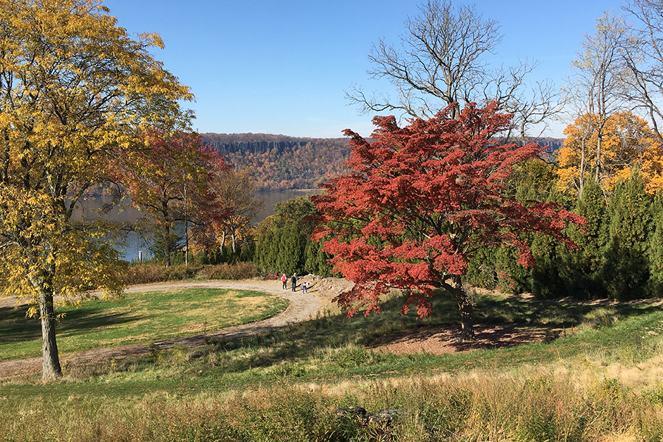 Featuring approximately 2 miles of connecting trails, Poet’s Walk is a truly unique park; it’s a designed landscape, a series of “outdoor rooms” separated by stands of trees and stone walls, created in the 1850s. The trails are flat and wide, and they offer spectacular views of the Catskill Mountains, the Kingston-Rhinecliff Bridge, and of course, the Hudson River.