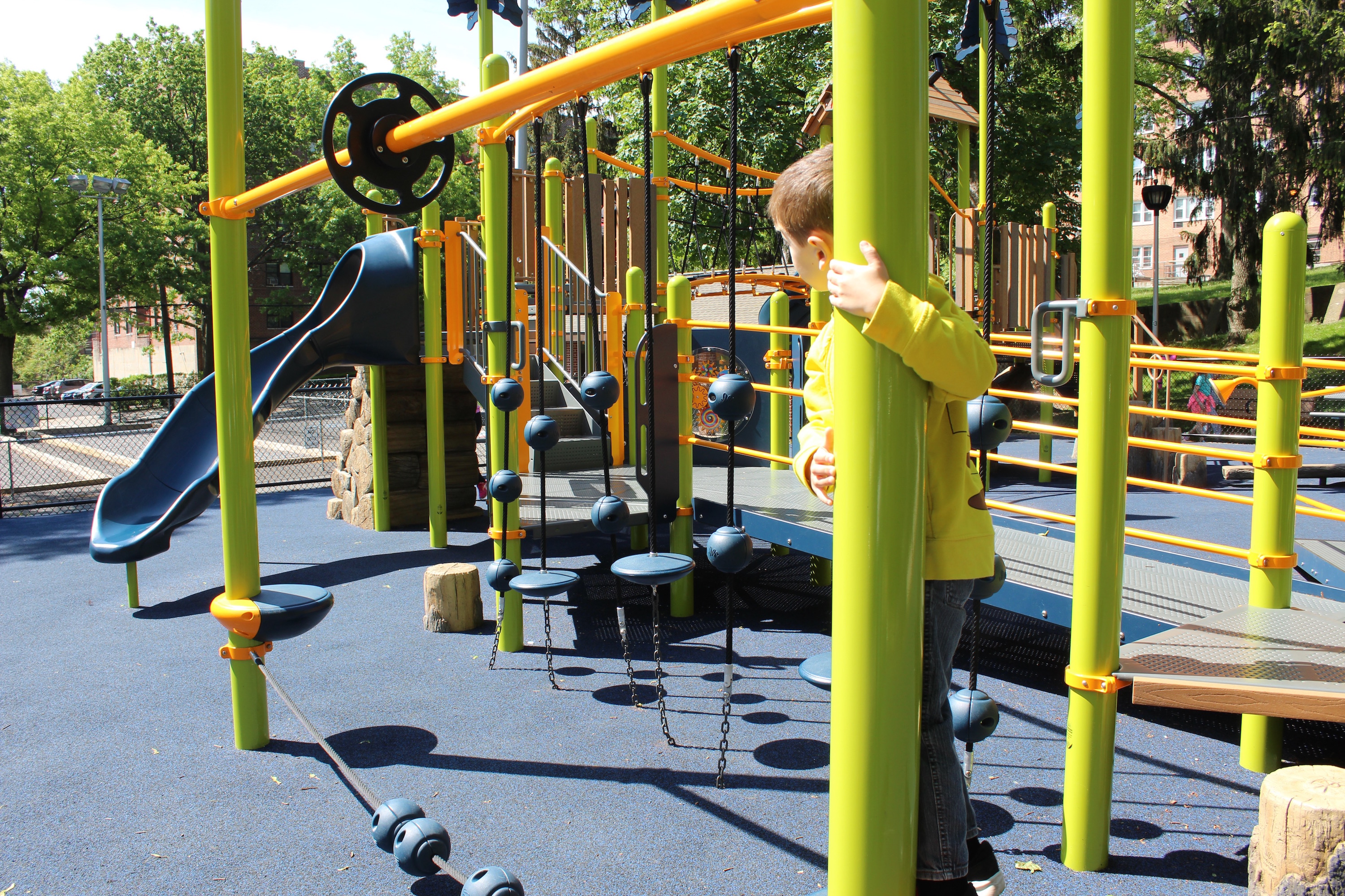 My son was in love with ropes equipment, and had a blast climbing, balancing, swinging and jumping on them. They were challenging enough to make him feel like he was quite the daredevil, yet safe enough that I felt totally comfortable with him playing on them.