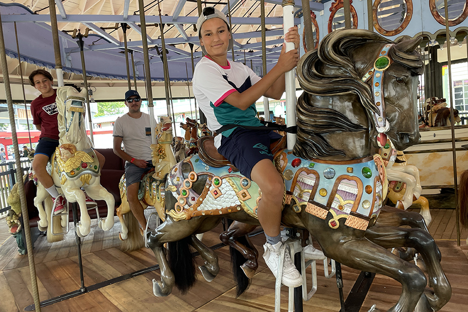 Original to the park, The Whip and Derby Racer are oozing with nostalgia and beautiful craftsmanship. At first glance, The Whip looks like a gentle old-timey ride, but as its uniquely-shaped cars travel along an elliptical, they’re whipped around bends at warp speed. Meanwhile, Derby Racer takes the traditional Carousel ride up a notch with a steeplechase. We channeled our inner jockeys and clung to our steeds as they “galloped” along a spinning turntable at 15 miles per hour.